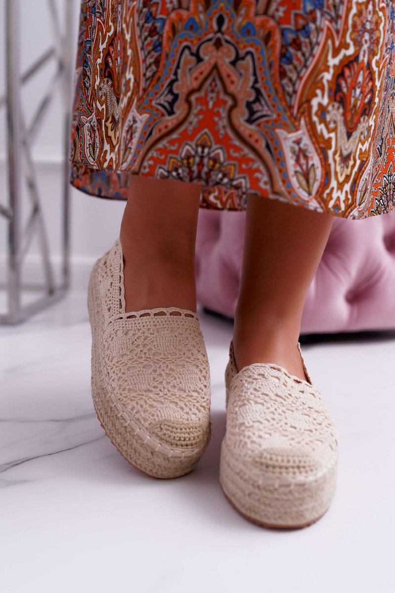Pohodlné, krajkové espadrilles na vysoké platformě! Vnější materiál bude odpovídat všemu. Tkaná šňůra kolem podešve a krásné řezané vzory jsou zastřeleny v 10! Při výběru velikosti navrhněte tabulku velikostí.