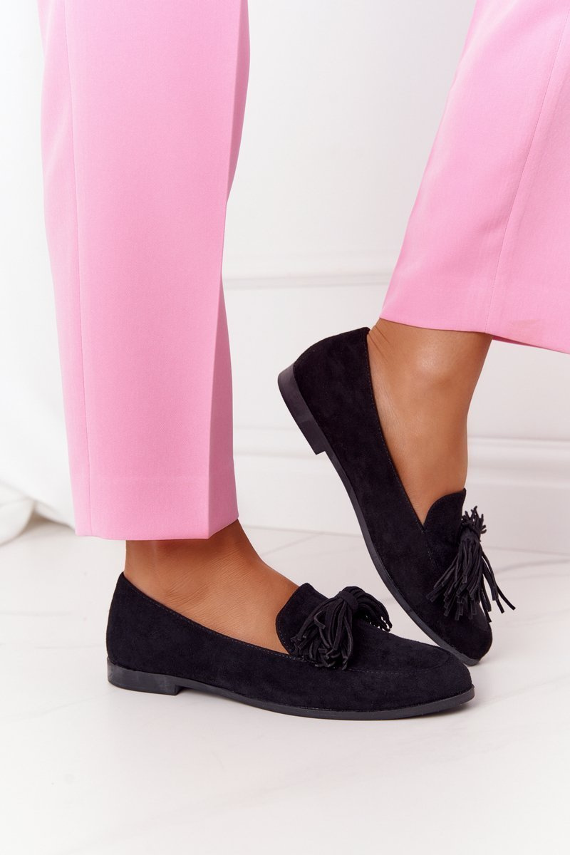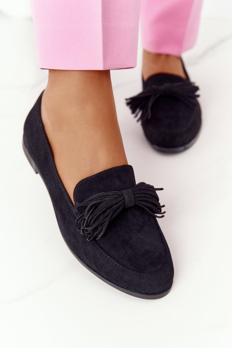 Semišové Dámské Mokasíny S Třásněmi Černé Alicante