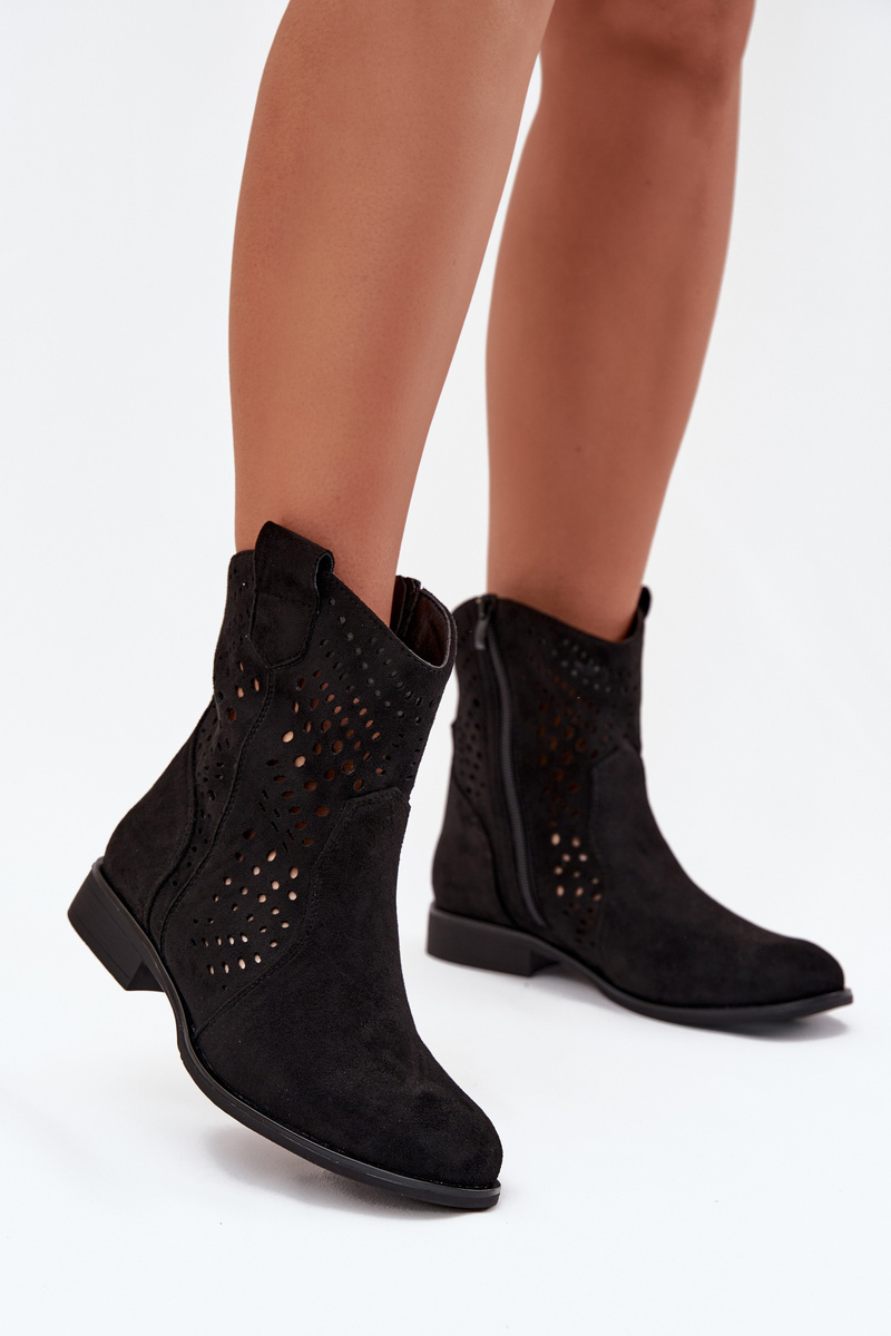Ažurové dámské kotníkové boty na nízkém podpatku Černé Amisna