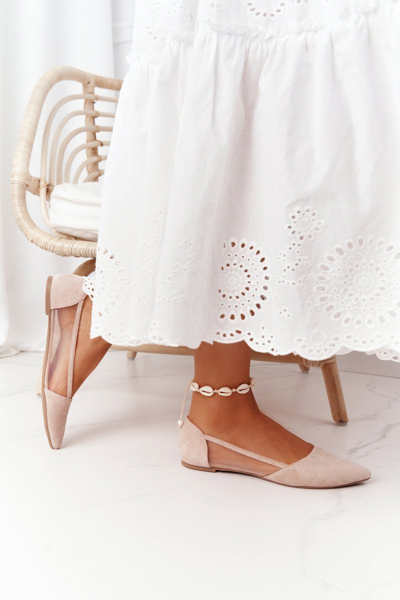 Unikátní baleríny se síťovinou. Boty jsou vyrobeny z ekologického semiše, mají stélku z ekologické kůže. Model se špičatou špičkou zúží vaši postavu. Nezapomeňte se podívat na celou naši kolekci dámských balerín! Při výběru velikosti použijte tabulku velikostí.