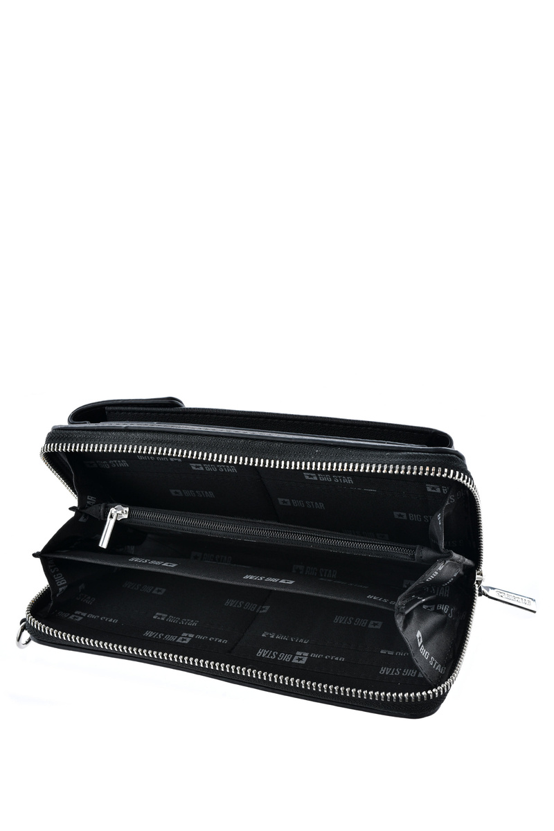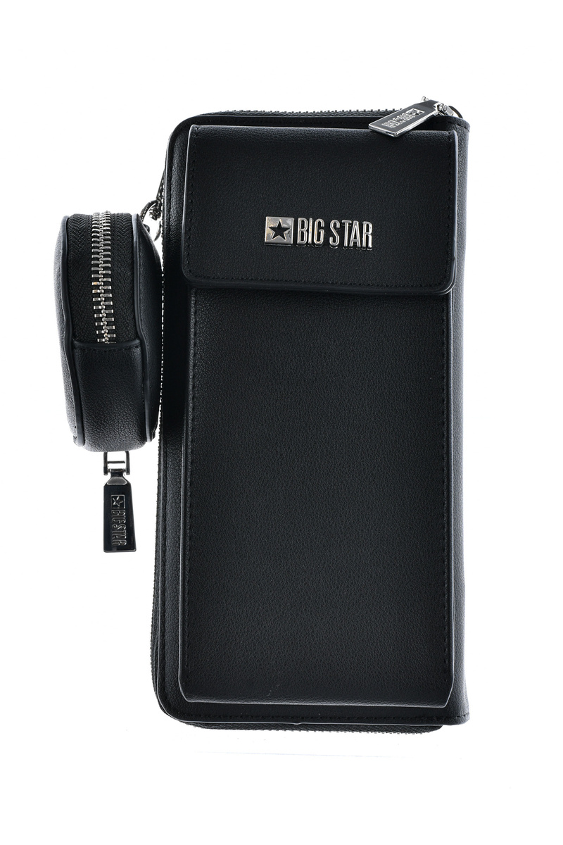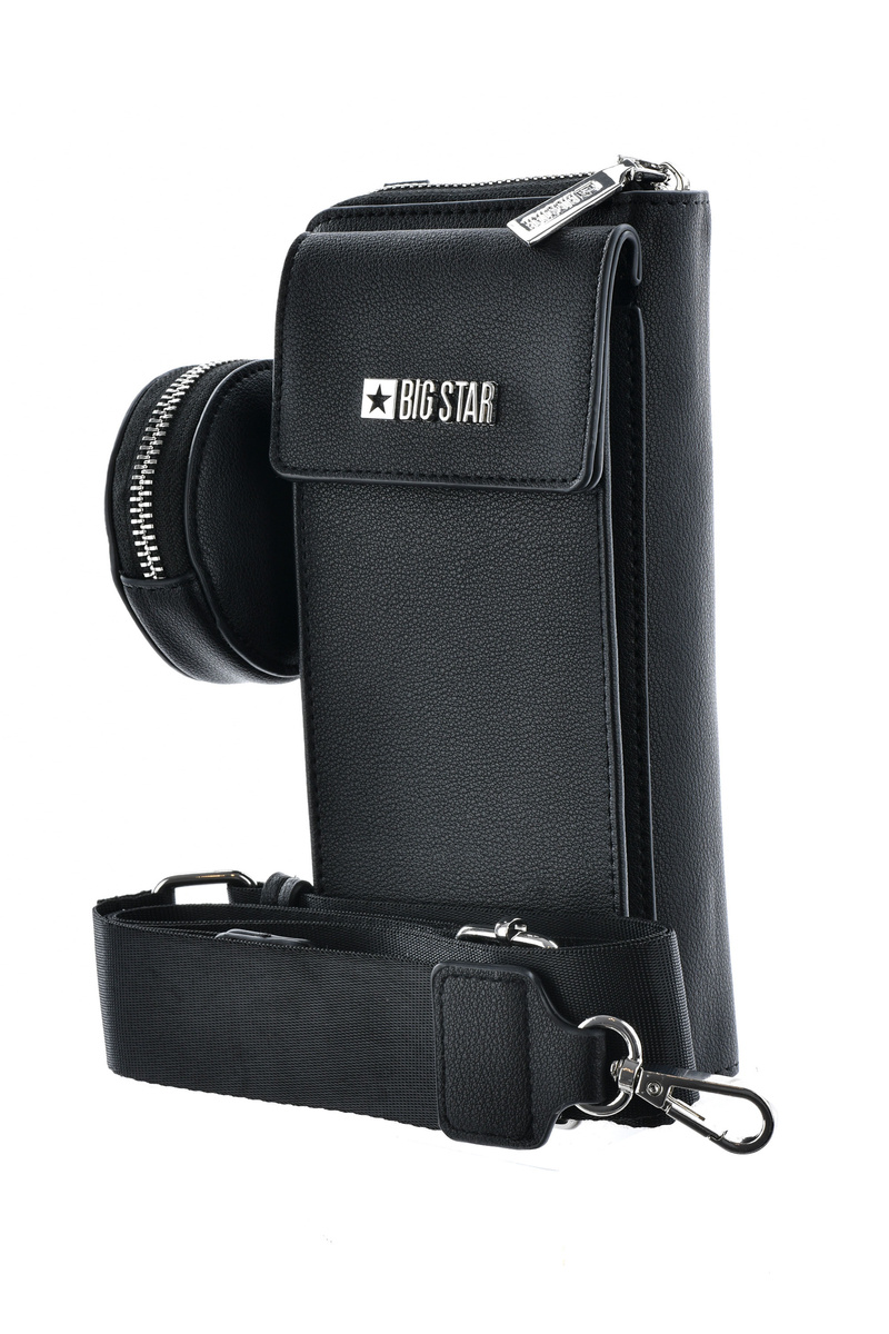 Peněženka - taška 2v1 Big Star je vyrobena z vysoce kvalitní eko kůže. Klopa se zavírá na magnet. Taška má přihrádku a kapsu na zip. Uvnitř je také místo na vizitky nebo občanské průkazy, mince a bankovky. Na přední straně je logo značky Big Star. Popruh je odnímatelný a nastavitelný. K peněžence je navíc připevněn malý sáček.