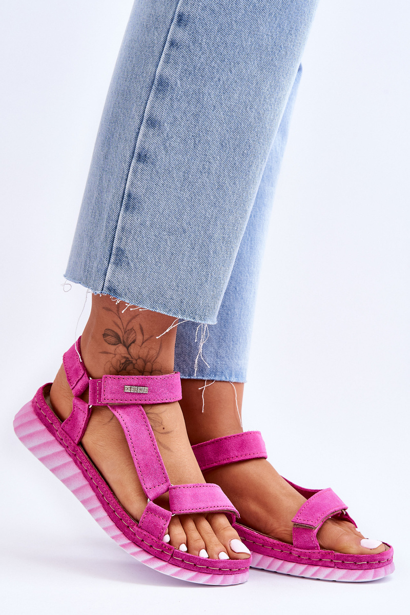 Big Star semišové sandály na suchý zip LL276012 Růžová