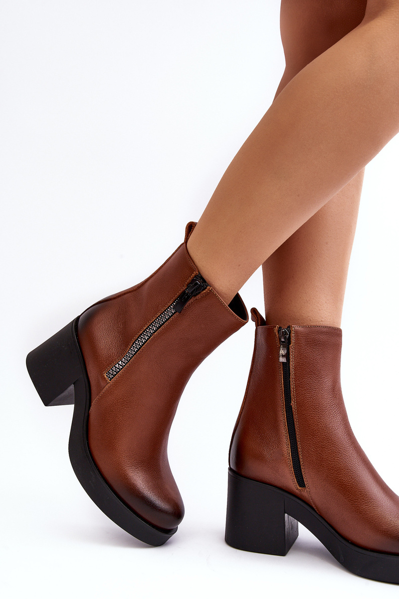Botky Kožené Na Masivním Podpatku Se Zipy Hnědé Lemar Littosa
