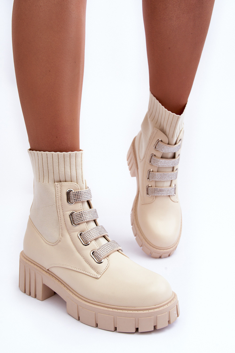 Botky Workery s Elastickou Cholewkou Bežové Kasseis
