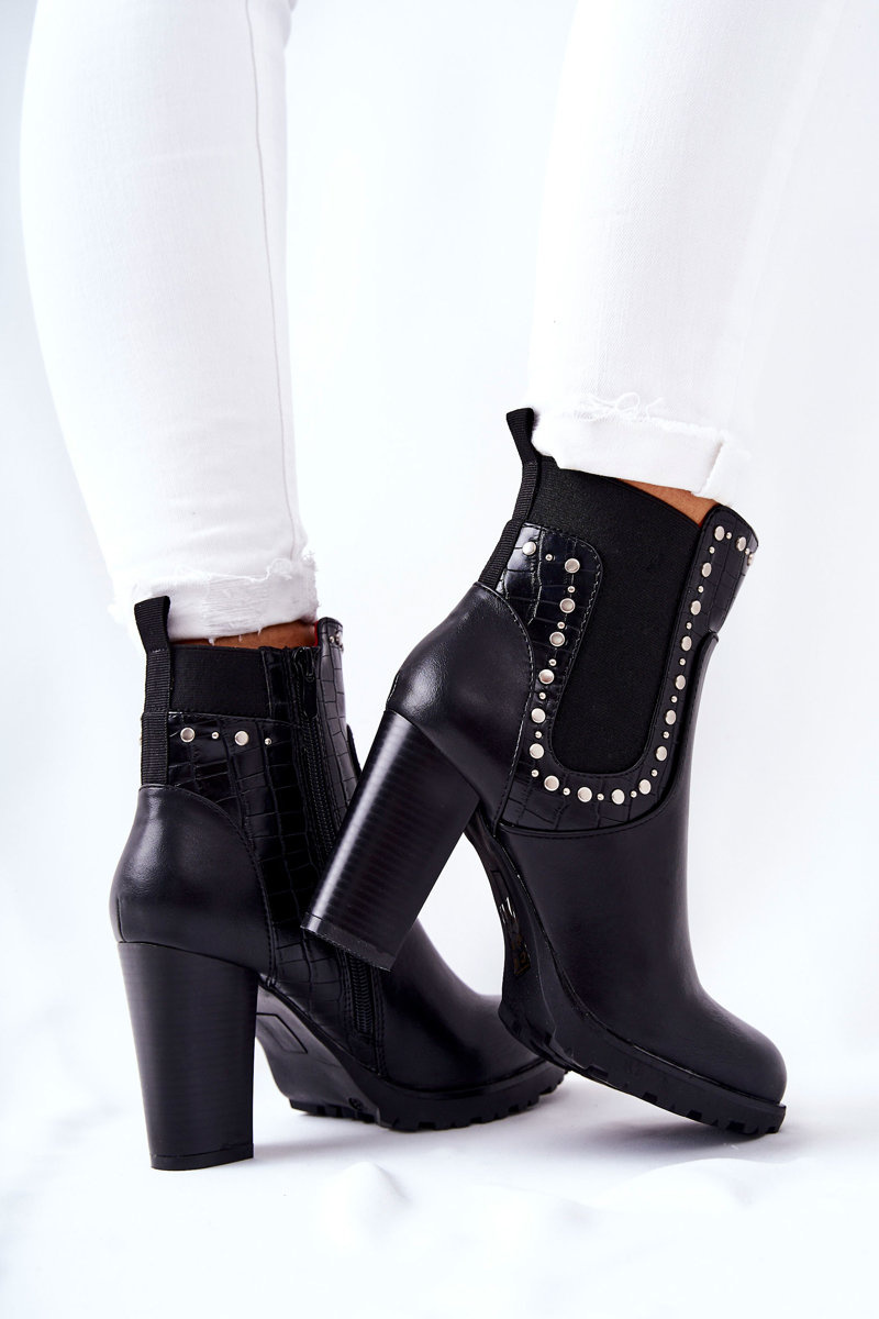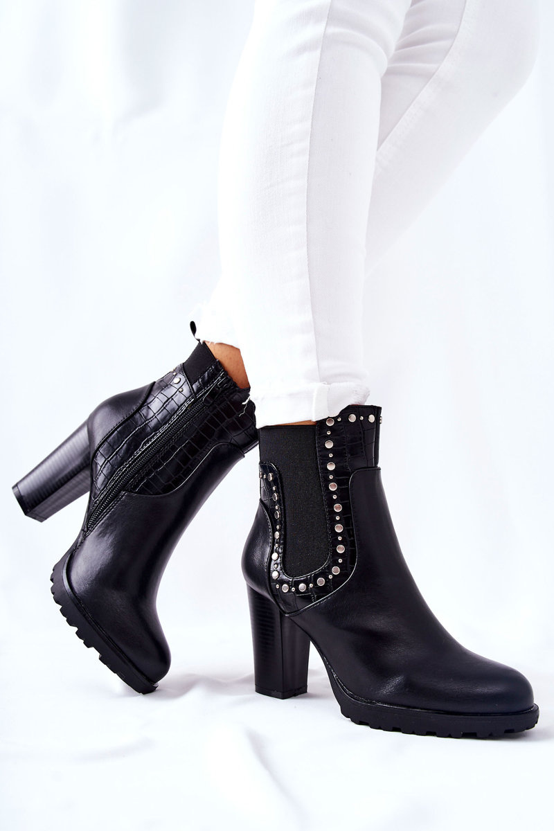 Boty, které potěší nejednoho milovníka vysokých podpatků! Jsou vyrobeny z ekologické kůže a uvnitř mají izolační přikrývku na boty. Na svršku mají kamínky a pásek, který se dokonale přizpůsobí vaší noze. Mandlový tvar špičky. Krásný model pro podzimní stylizace! Při výběru velikosti se řiďte tabulkou velikostí..