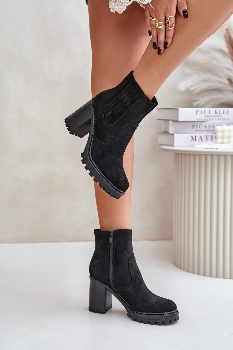 Boty vyrobené z eko semiše na sloupkovém podpatku jsou vynikající volbou na každou příležitost. Zapínání na zip usnadňuje obouvání a svlékání obuvi. Zaoblené špičky. Ideální jak pro volnočasové, tak pro formálnější outfity! Při výběru velikosti se řiďte tabulkou velikostí.