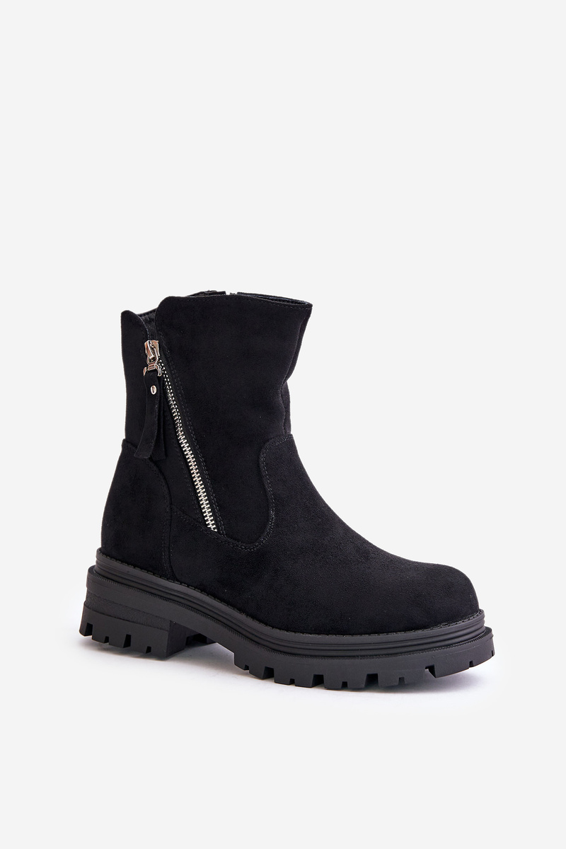 Boty s teplou podšívkou na plochém podpatku z eko semiše černé Reloma