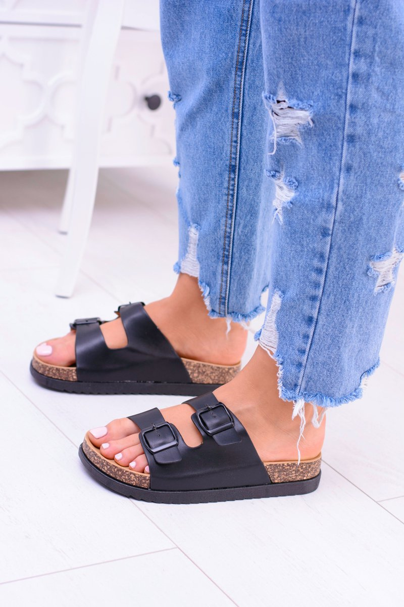 černé Dámské pantofle se zapínáním na Cork Ferone