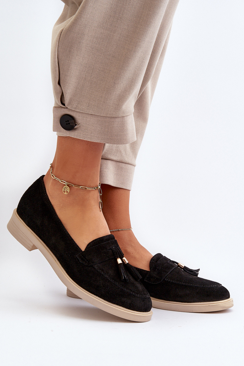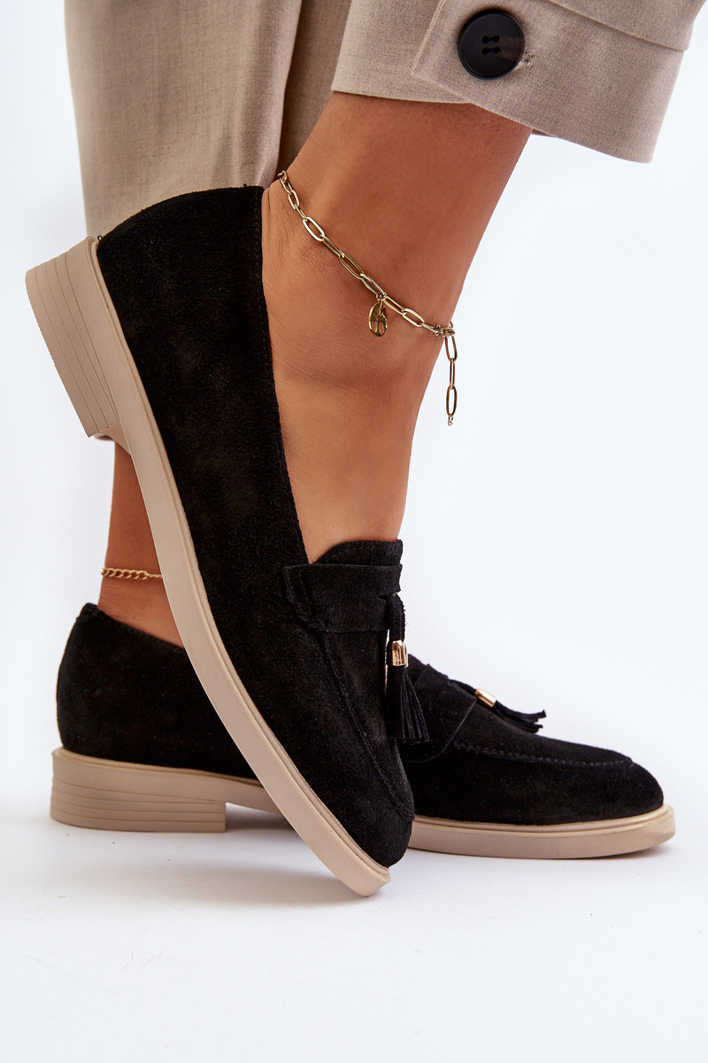 Černé Dámské Semišové Mokasíny Na Ploché Podrážce Zazoo 3420