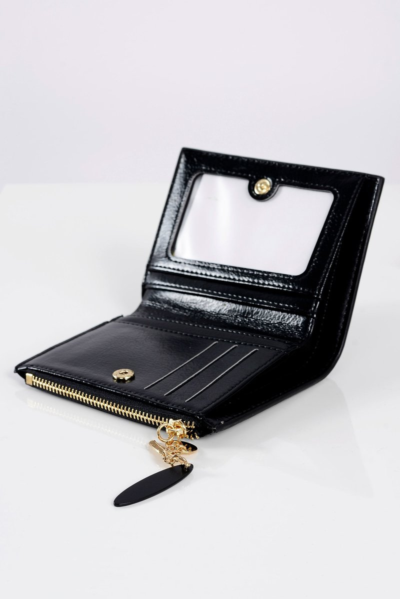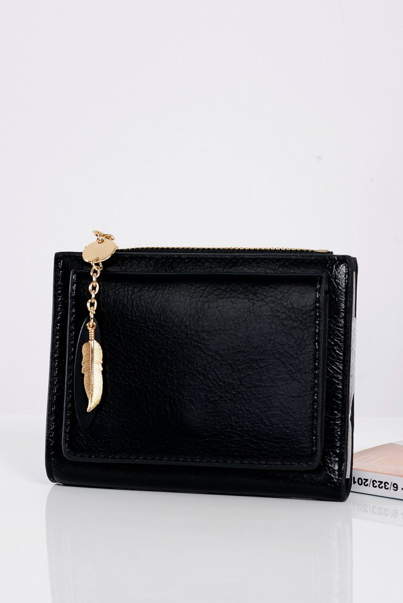 Czarny Portfel Damski Portmonetka Złote Piórko