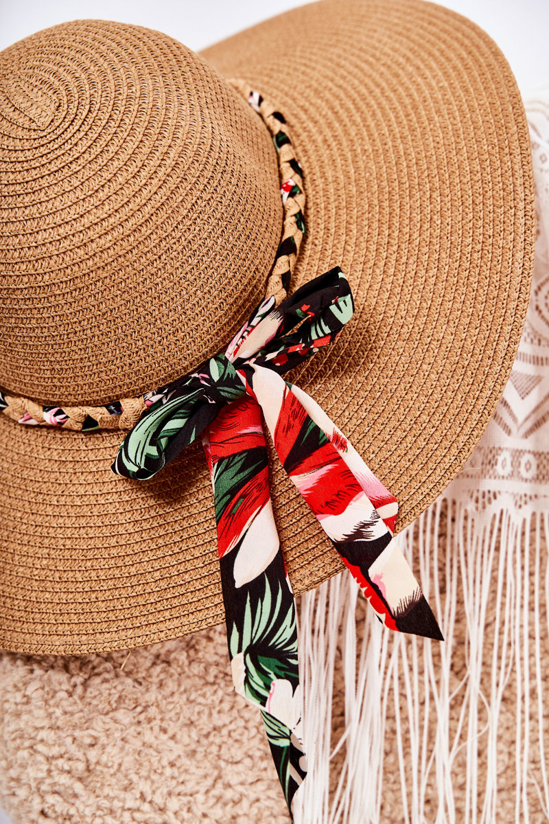 Dámská čepice s krásným páskem, který má barevnou mašli s motivem květin. Výrobek je vyroben ze 100% papíru. Má šňůrku, která umožňuje přizpůsobení a přizpůsobení obvodu hlavy. Okraj klobouku je poměrně široký. Čepici využijete na dovolené v horkých dnech. Nezapomeňte se podívat na celou naši kolekci klobouků!