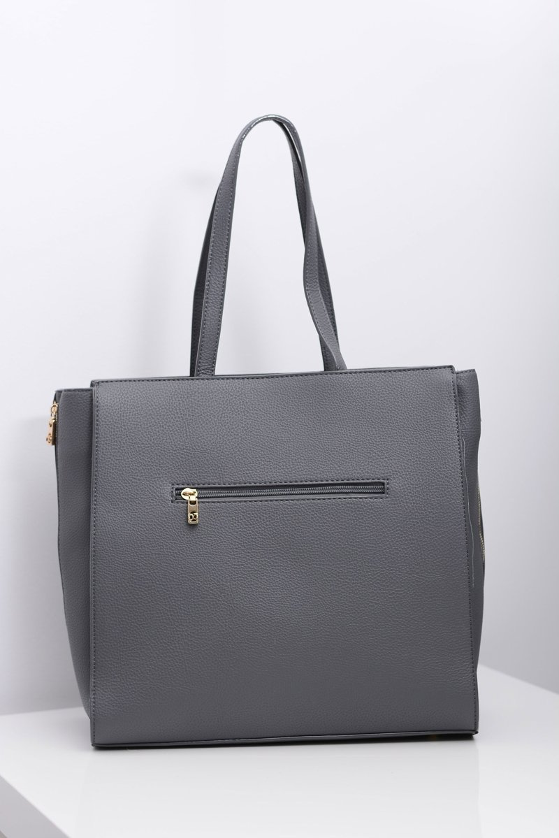Duża i pojemna torebka z pewnością przyda się każdej kobiecie. Jedna duża komora z trzema małymi kieszeniami w tym jedna zapinana na zamek. Na zewnątrz jedna dodatkowa kieszeń. Całość oraz boki torebki zapinane na zamek.