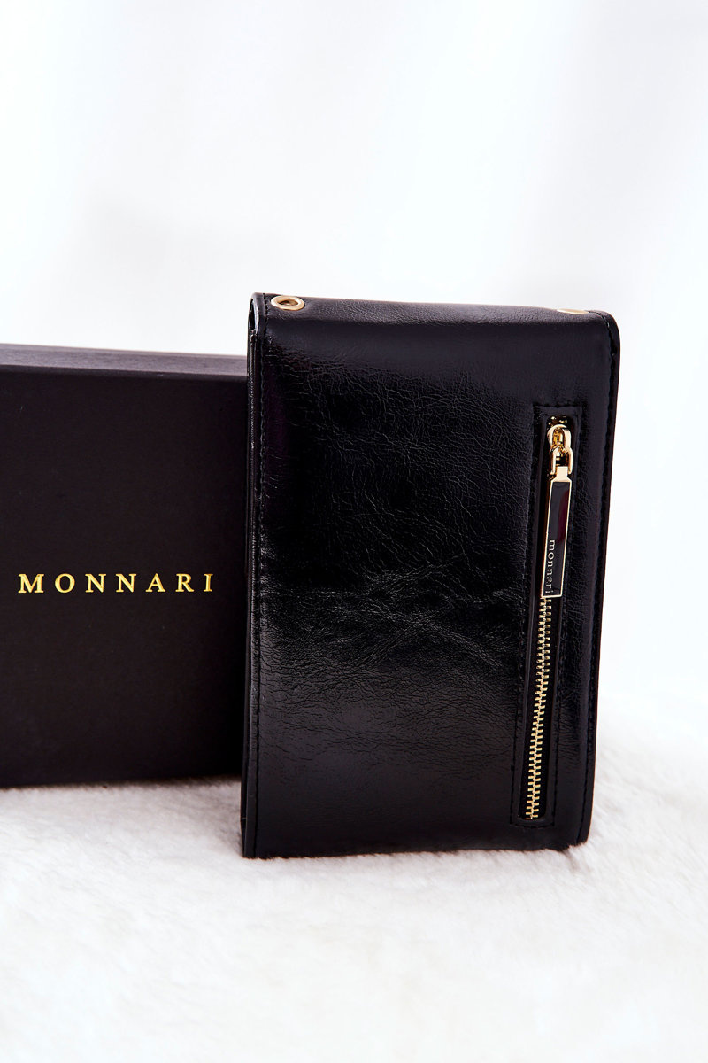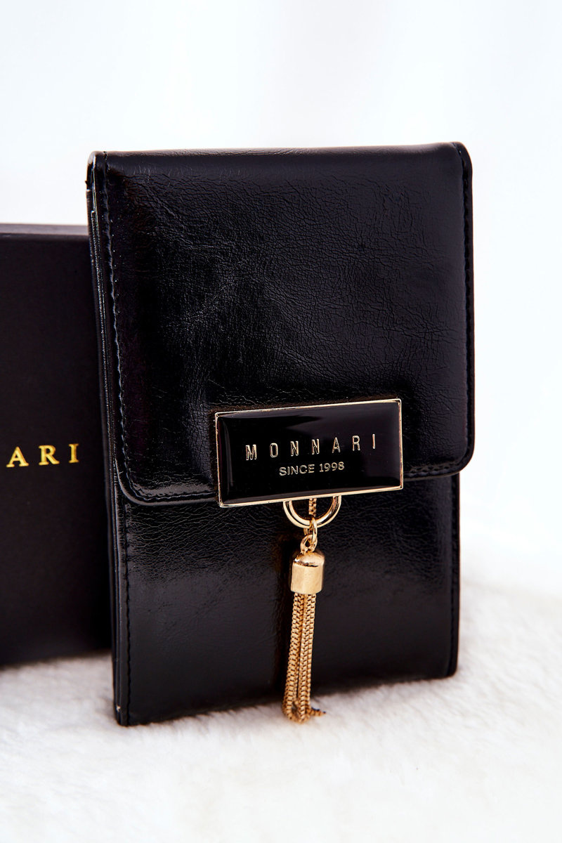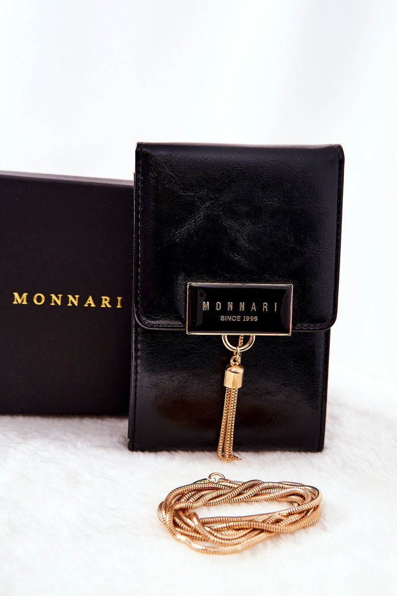 Tato taška je ideální pro případy, kdy si potřebujete vzít nejnutnější věci, jako je telefon, doklady nebo peníze. Připevňuje se pomocí klapky s magnetem. Uvnitř jsou dvě přihrádky s dalším prostorem na vizitky a jedna otevřená kapsa. Na vnější straně tašky je také kapsa na zip. Navíc je k němu připojen řetízek. Na klopě je ozdobný emblém s logem značky Monnari a střapec.