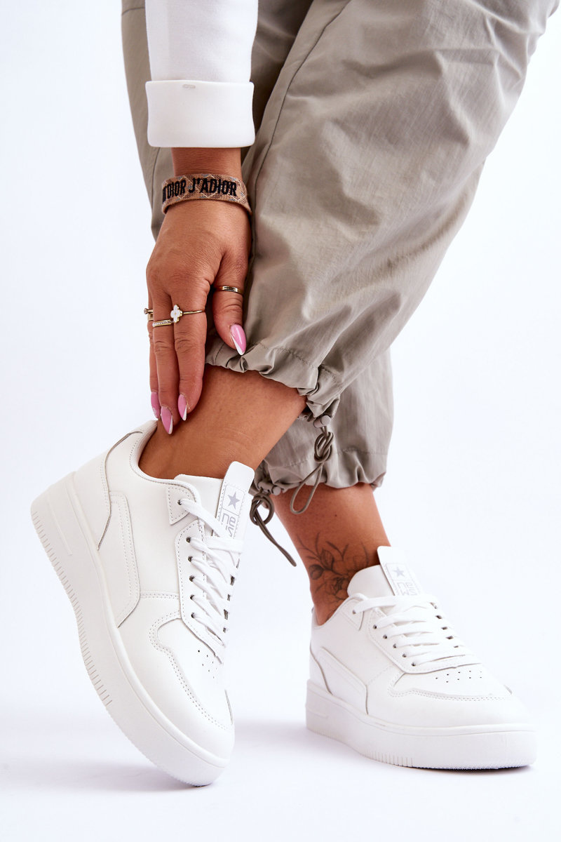 Klasické, nadčasové sportovní boty. Jsou vyrobeny z vysoce kvalitní eko kůže. Tento model má šněrování. Na přední straně mají jemnou perforaci. Vložka je vyrobena z materiálu. Tyto boty byly umístěny na platformě. Rozhodně byste je měli mít! Při výběru velikosti se řiďte tabulkou velikostí.