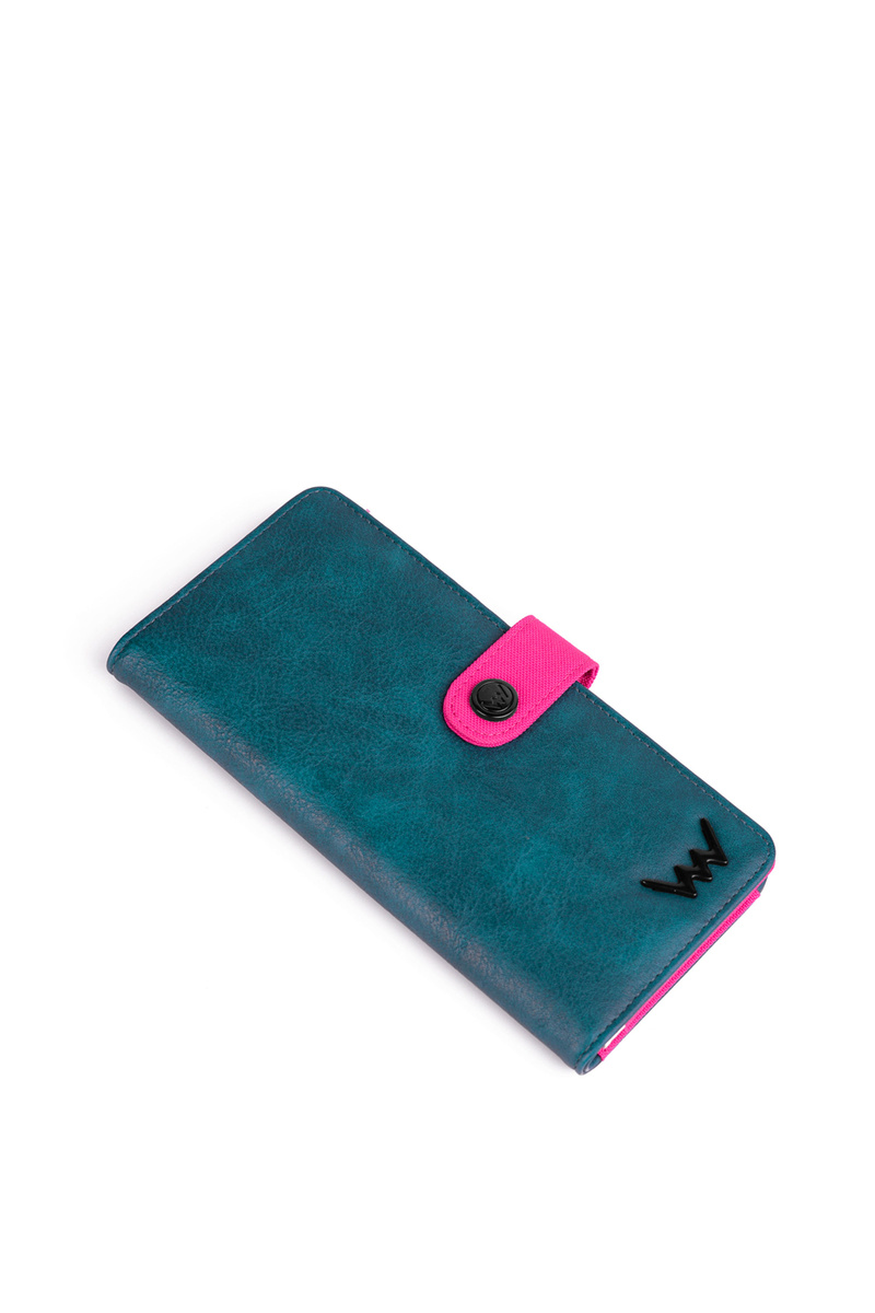 Peněženka je vyrobena z ekologické kůže a textilního materiálu. Peněženka se zapíná na sponu. Na přední straně peněženky je ozdobný emblém. Peněženka má mnoho otevřených kapes na vizitky nebo poznámky. Uvnitř je také místo na fotografii. Podívejte se na naše další nabídky peněženek!