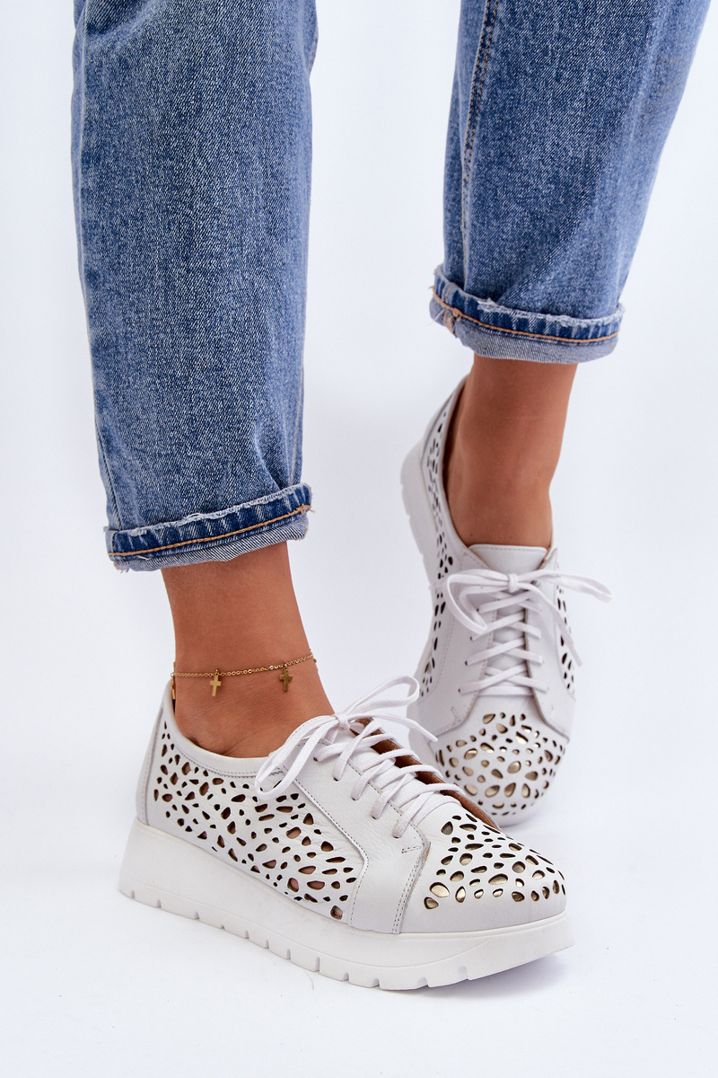 Dámská kožená polobotka s ažurovým vzorem Zazoo 2821 Světle šedá