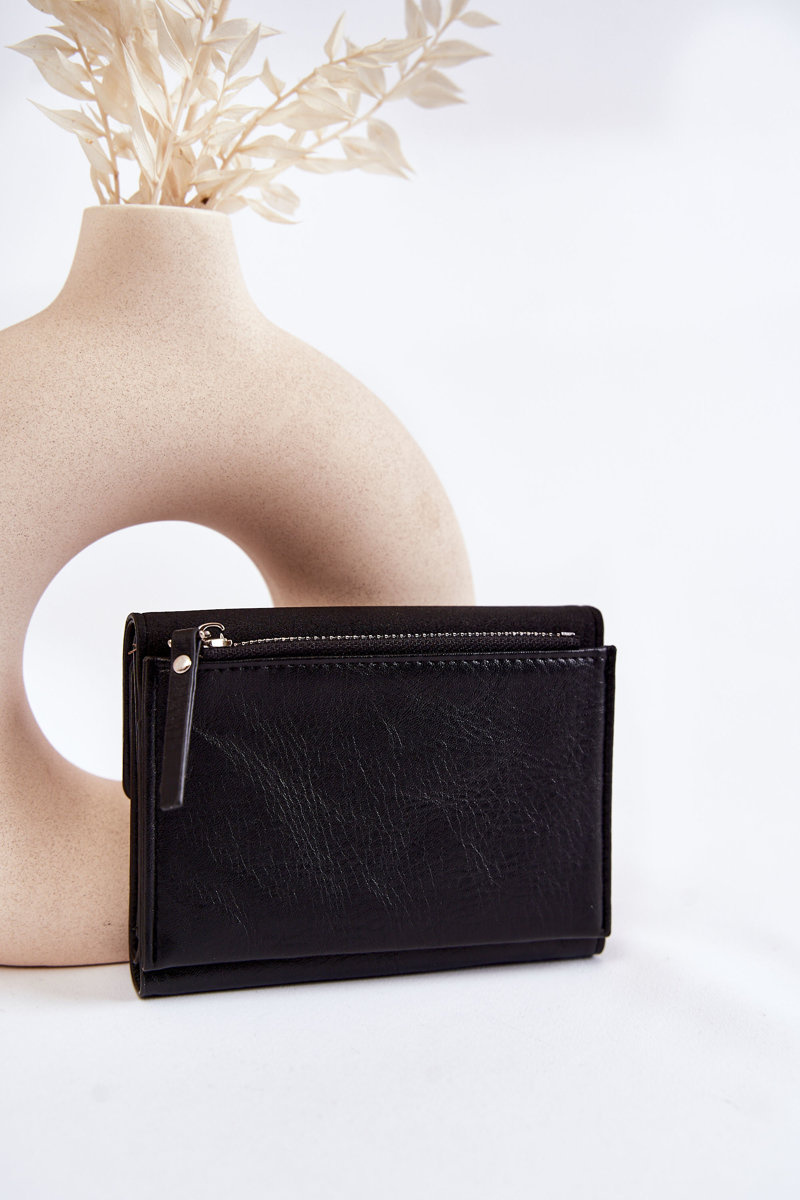 Malá klasická dámská peněženka je vyrobena z eko kůže. Zapínání na magnet a zip. Uvnitř má několik kapes na karty nebo vizitky, místo na bankovky a místo na fotku. Kapsa na zip na zadní straně pojme mince. Tento model charakterizuje nepravidelná klapka. Tento nezbytný doplněk pro každou ženu se bude hodit i jako dárek!