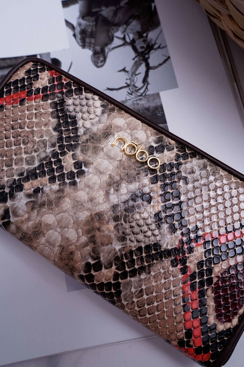Elegantní dámská peněženka od renomované značky NOBO. Klasický hadí vzor vyrobený z ekologické kůže. Peněženka na zip. Uvnitř je prostor pro 8 karet nebo jiných dokumentů a čtyři přihrádky, z nichž jedna je na zapínání zipem. Peněženka je balena v elegantní černé krabici s logem značky.