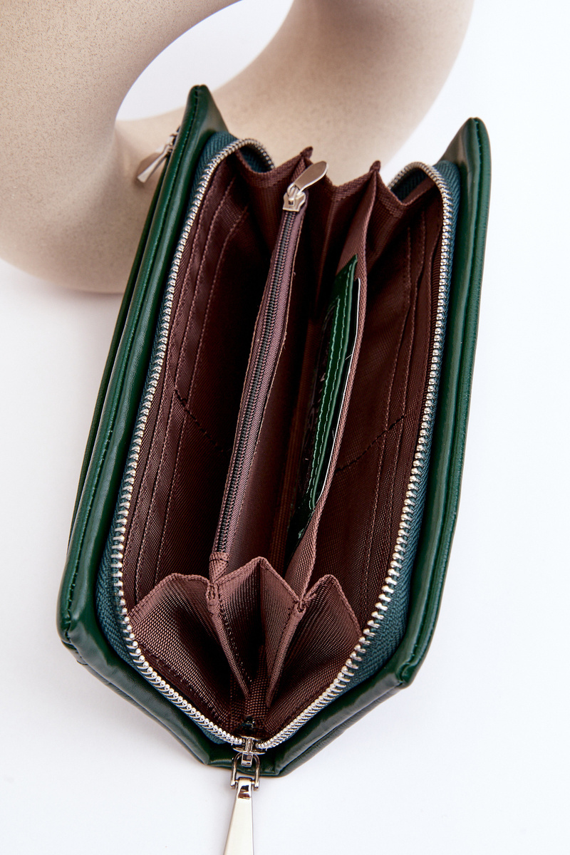 Dámská peněženka vyrobená z ekokože. Zavírá se na pohodlný zip, což zajišťuje snadné otevírání a zavírání. Uvnitř jsou klasické přihrádky, včetně jedné se zipem. Tento model navíc disponuje odnímatelným popruhem. Ideální volba pro ty, kteří ocení jednoduchost a funkčnost!