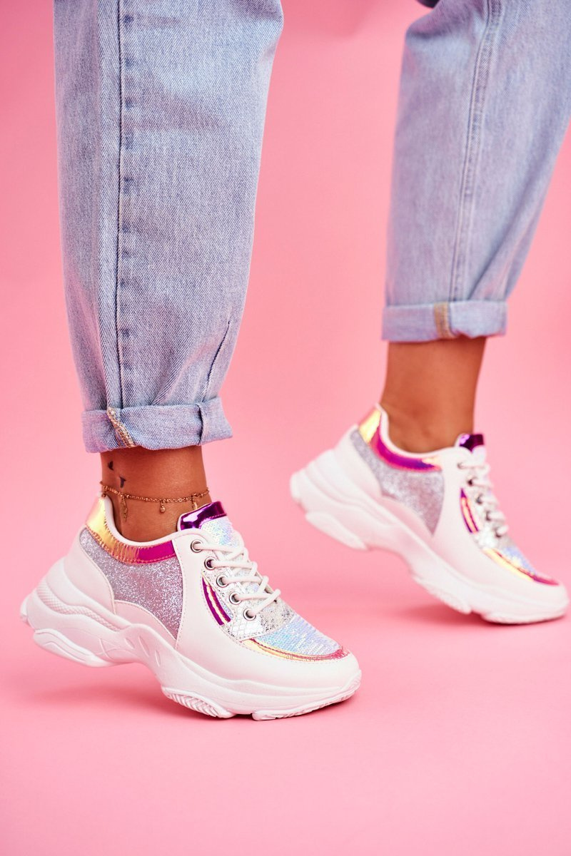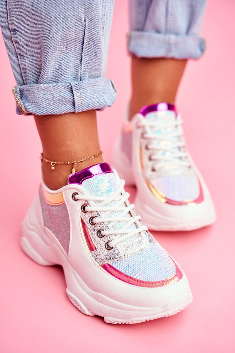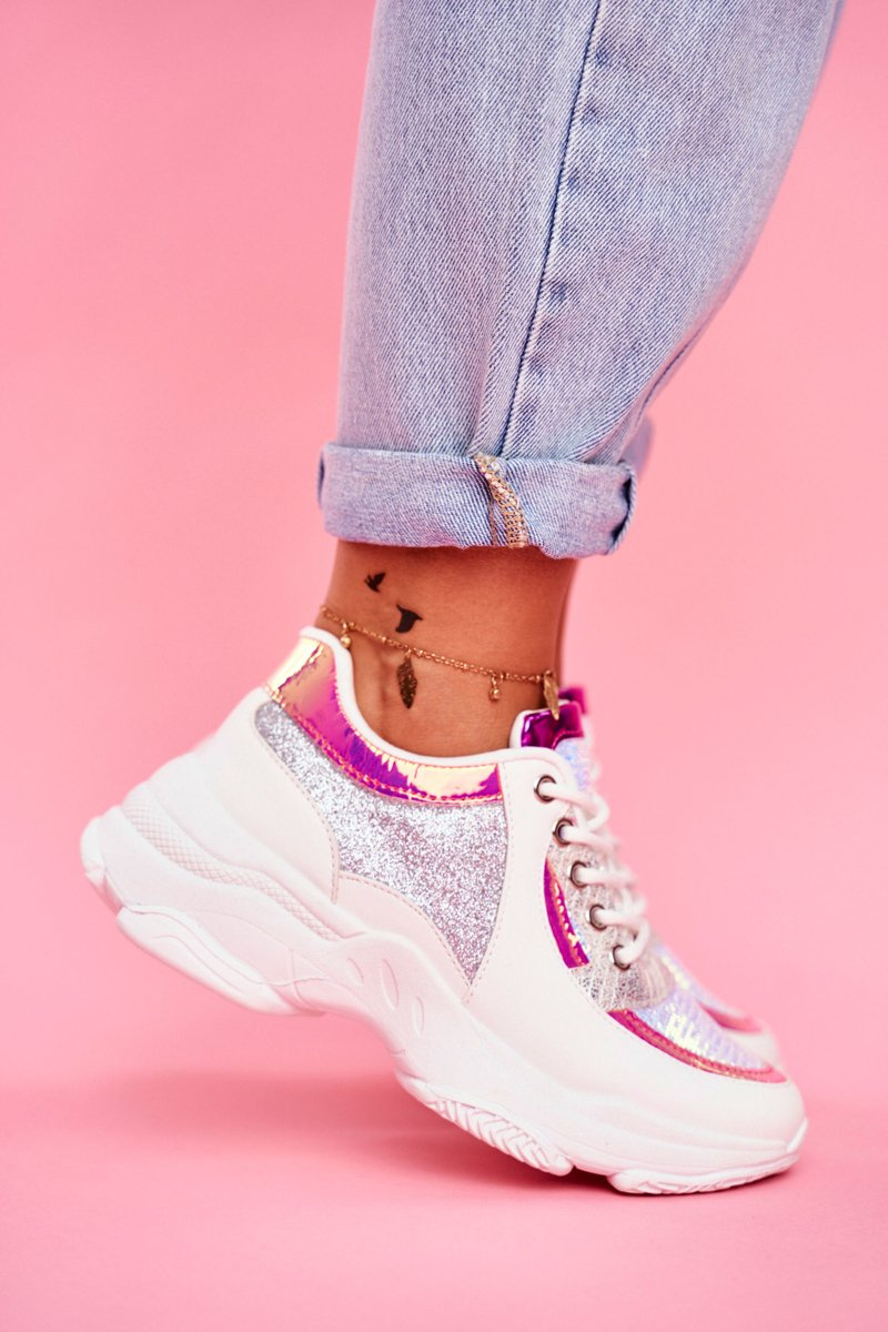 Pokud si ceníte pohodlí a pohodlí během každodenních povinností, nezapomeňte se podívat na naši nabídku sportovní obuvi. Tenisky zdobené třpytkami a holografickými prvky. O vaše pohodlí se postará měkká, odvětrávaná stélka. Při výběru si zkontrolujte tabulku velikostí.