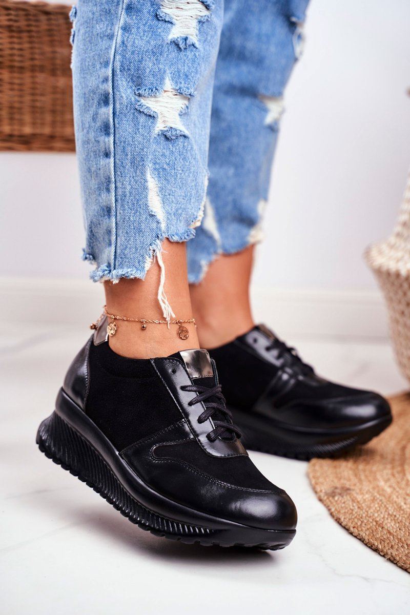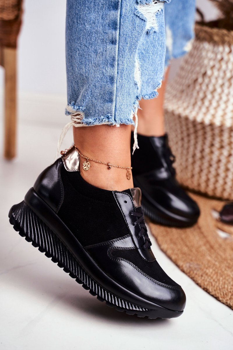 Dámská Sportovní Obuv Kožená Černá Gianna