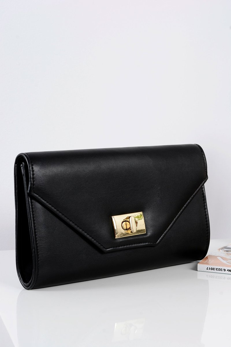 Damska Torebka Czarna Kopertówka Złoty Łańcuszek