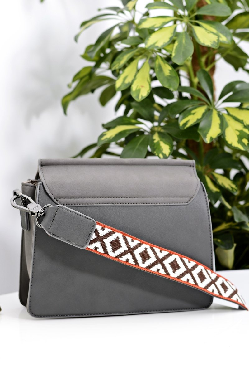 Każda kobieta chce mieć stylową torebkę. Świetną propozycją będzie ten niezwykły model! Fason w stylu listnoszki, 1 duża komora z dwiema małymi kieszonkami. Całość zapinana na napa wraz z długim paskiem.
