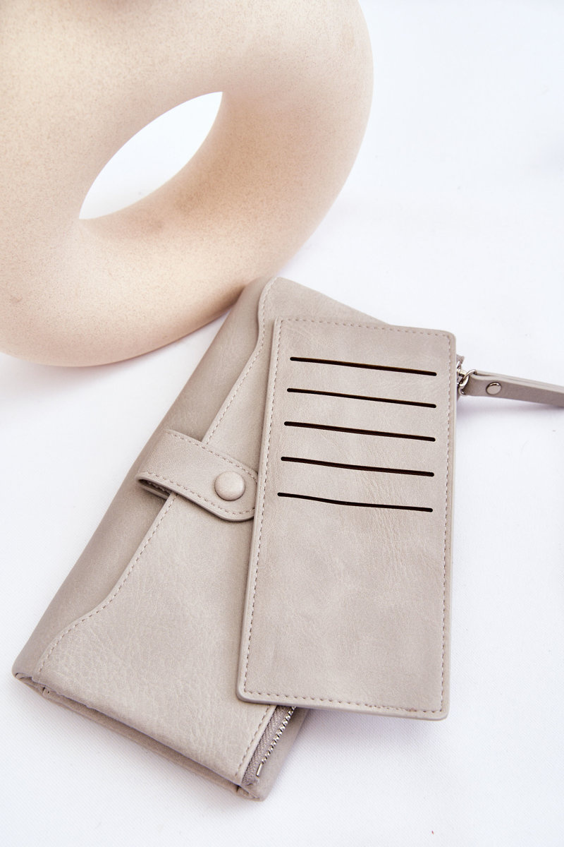 Velká dámská peněženka se zapínáním na druky a zip. Byl vyroben z eko kůže. Uvnitř jsou otevřené komory a jedna uzavíratelná na zip. Kromě toho peněženka obsahuje také mnoho míst pro vizitky nebo kreditní karty. Na vnější straně je také další kapsa uzavíratelná na zip a další přihrádka zapínaná na druky. Do této peněženky se vejdou nejnutnější věci, jako jsou: doklady nebo peníze.
