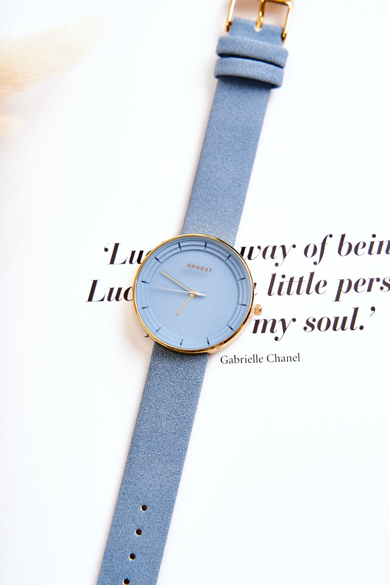 Dámské hodinky Ernest jsou modelem pro každou ženu, která ocení eleganci a módní vzhled. Tyto hodinky mají nastavitelný pásek z přírodního semiše. Zapínání na přezku. Velký ciferník ve stejné barvě jako řemínek hodinek. Vyrobeno z nerezové oceli. Neobsahuje nikl. Rozhodně byste ji měli mít ve svém příslušenství!