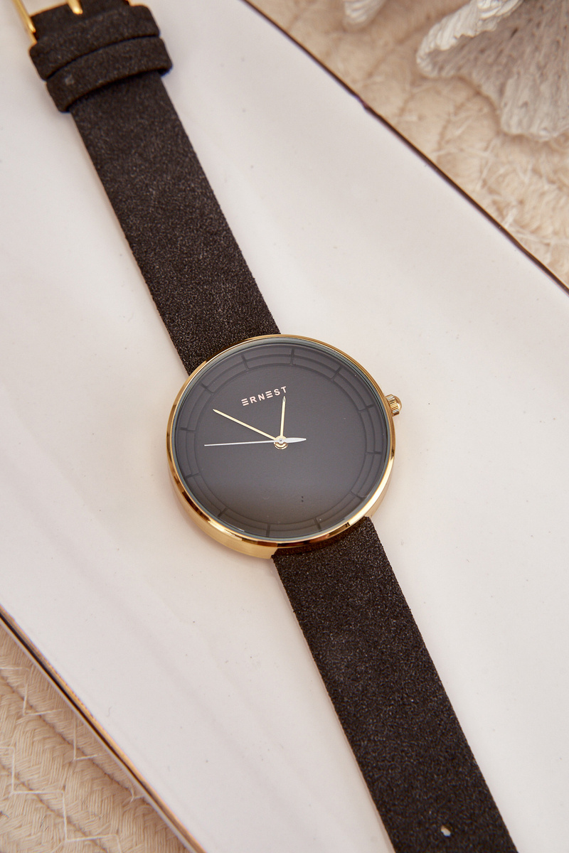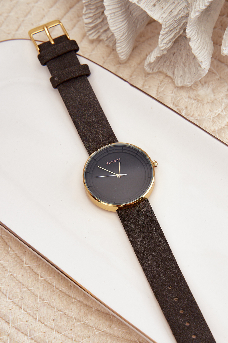 Dámské hodinky Ernest jsou modelem pro každou ženu, která ocení eleganci a módní vzhled. Tyto hodinky mají nastavitelný pásek z přírodního semiše. Zapínání na přezku. Velký ciferník ve stejné barvě jako řemínek hodinek. Vyrobeno z nerezové oceli. Neobsahuje nikl. Rozhodně byste ji měli mít ve svém příslušenství!