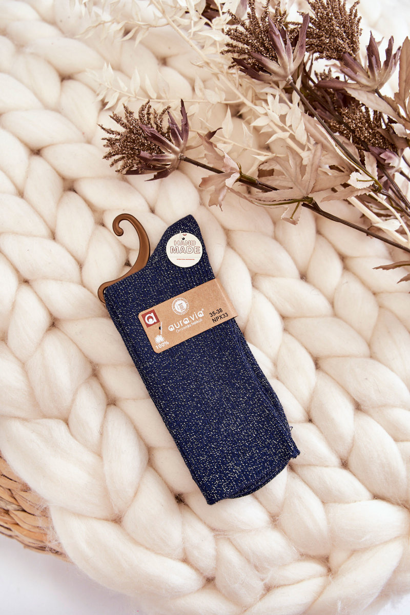 Dámské antibakteriální ponožky s lesklou nití námořnická modrá