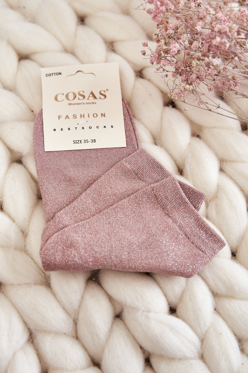 Dámské bavlněné ponožky s lesklou nití Cosas Růžove