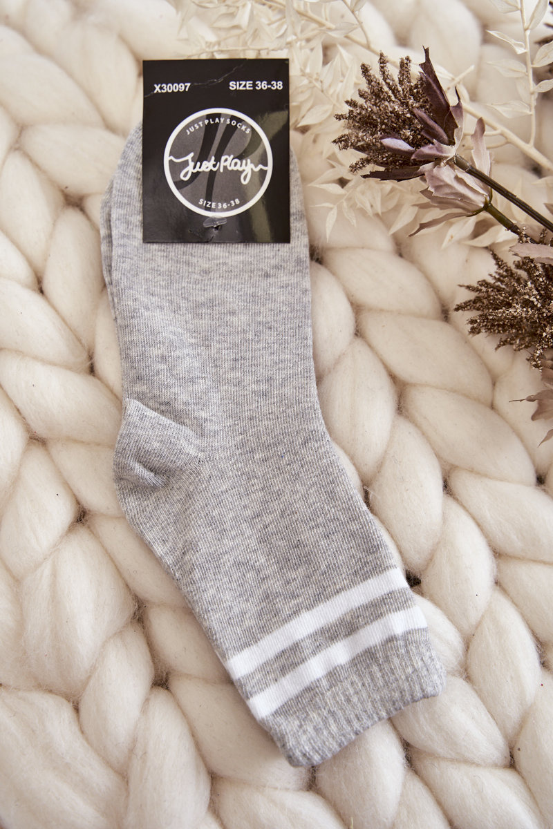 Dámské bavlněné sportovní ponožky s pruhy Šedá