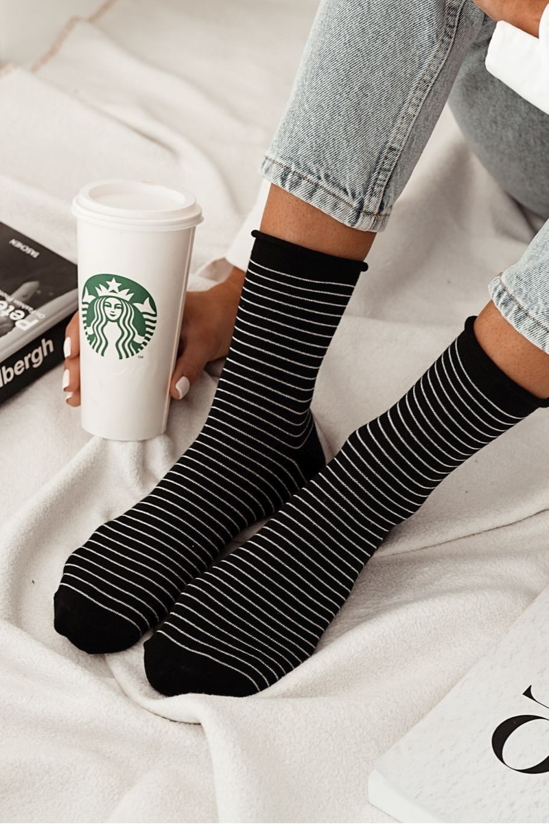 Dámské Bezotlakové Ponožky S Tenkými Pásky Černé