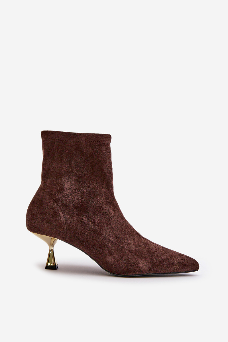 Dámské Botky Na Jehlových Podpatcích Eko Zamšové S Špičatými Nosky Hnědé Irithare
