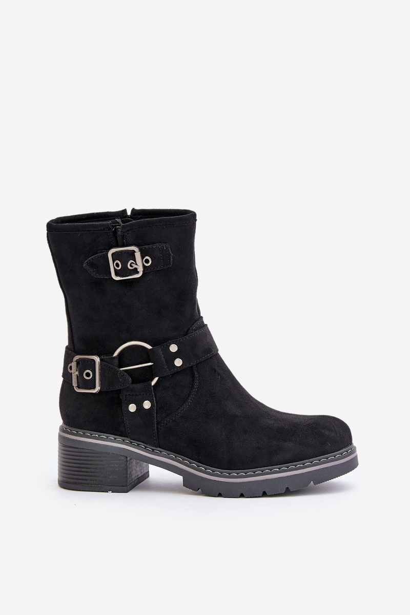 Dámské Botky Na Nízkém Podpatku S Přezkami Černé Zudra