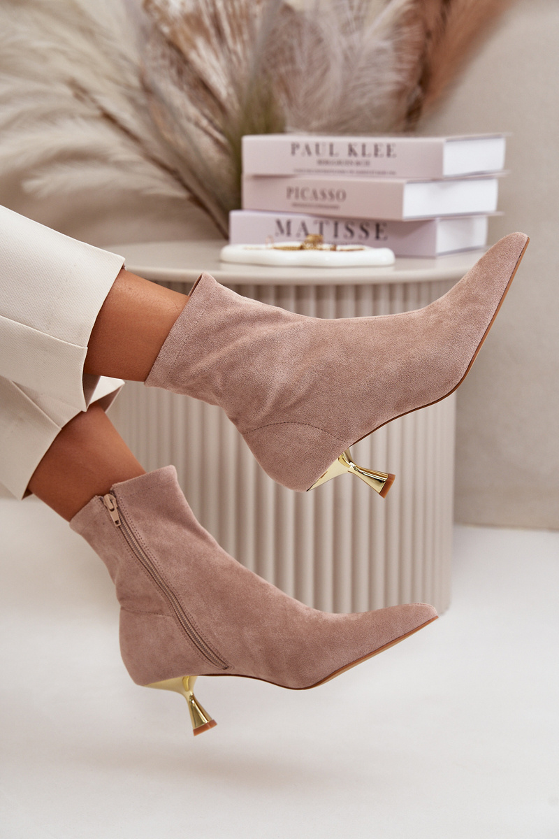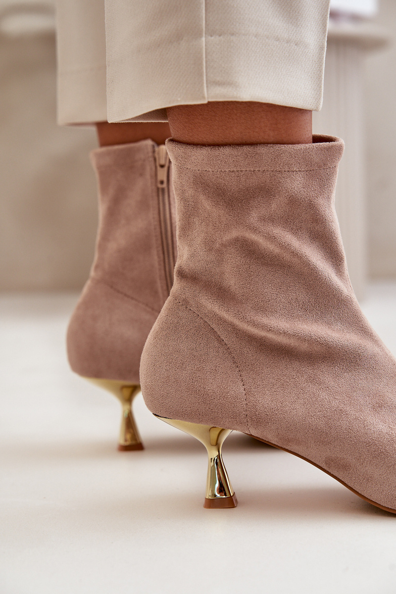 Dámské Botky Na Podpatku Eko Semišové S Špičatými Nosy Béžové Irithare