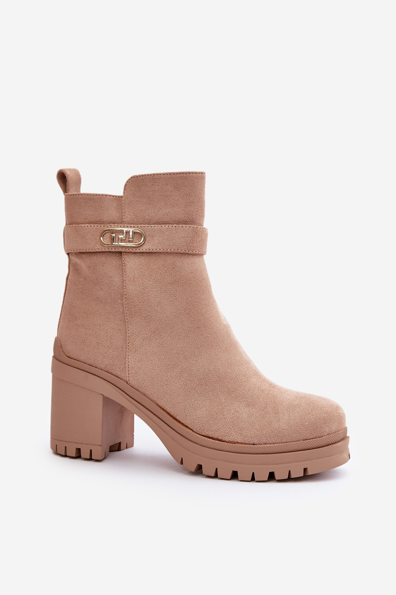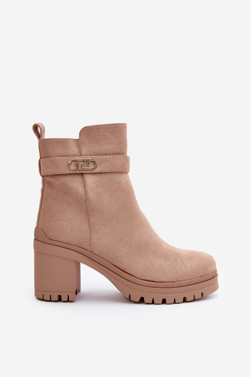 Dámské botky na podpatku eko zamšové zateplené na zip béžové Laonora