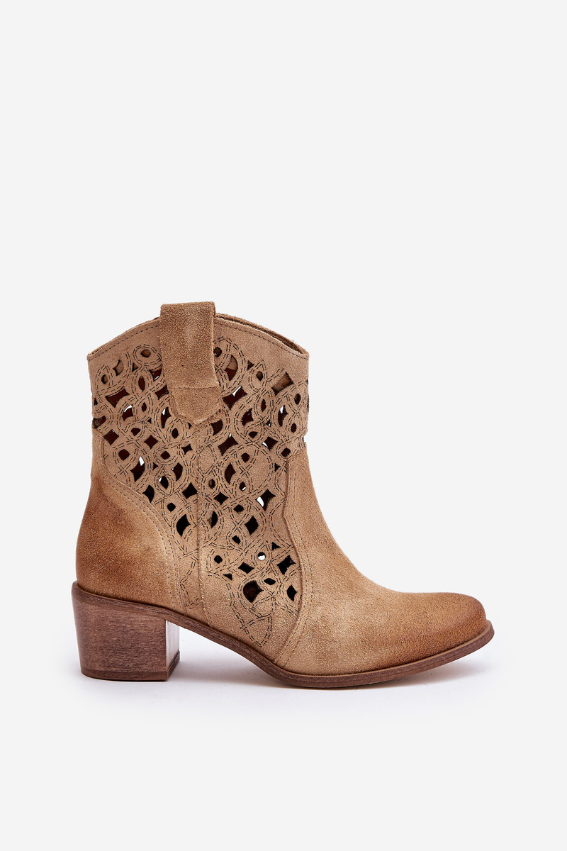 Dámské Botky Na Podpatku S Vyřezávaným Vzorem Béžové Lewski 3394/2