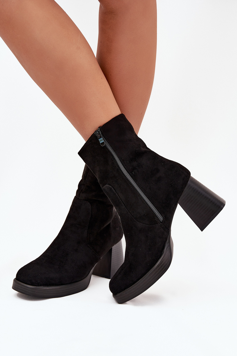 Dámské Botky Na Podpatku Z Eko Semiše Se Zipem Černé Serinna