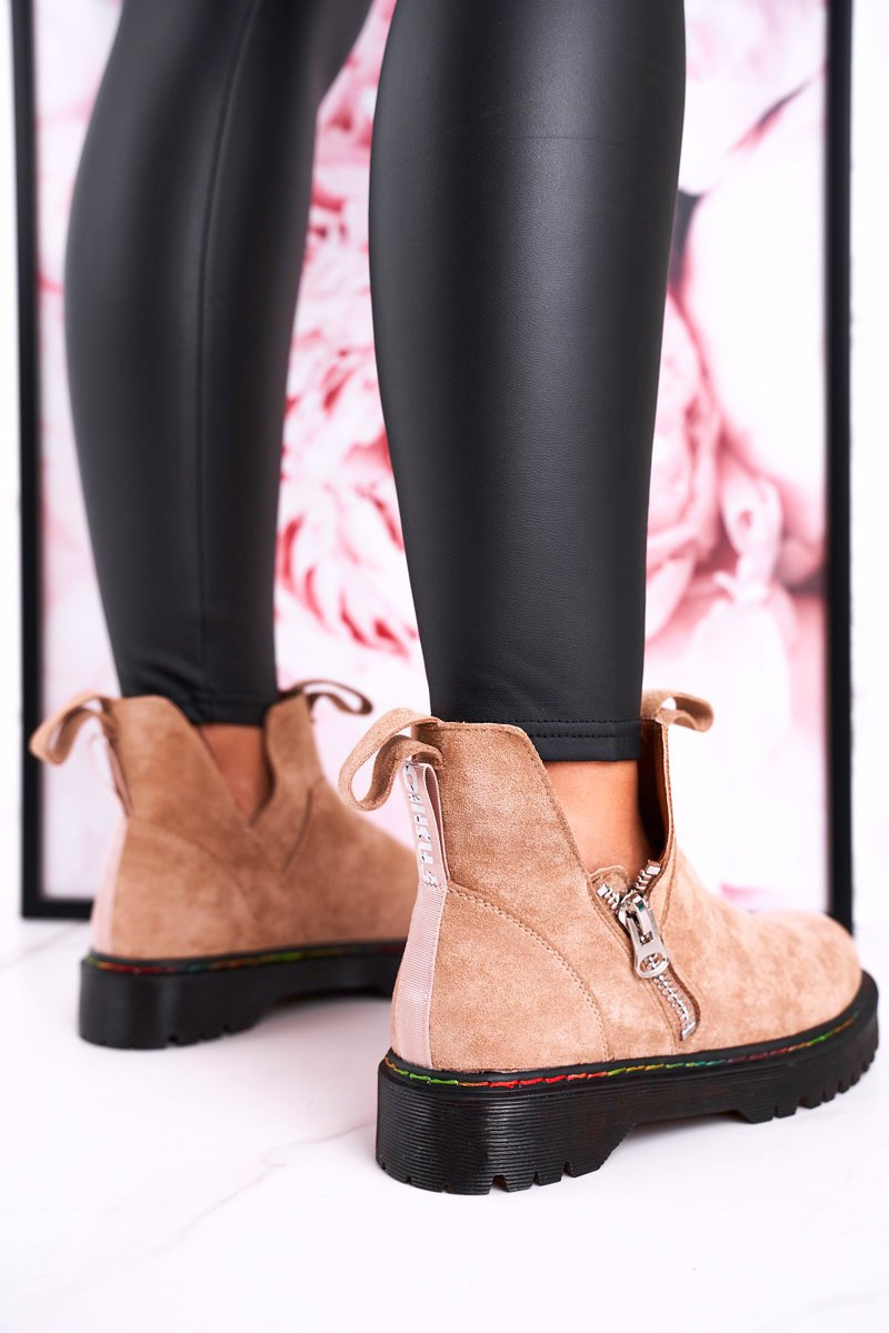 Dámské Botky Pérka S Barevným Prošíváním Semišové Béžové Addison
