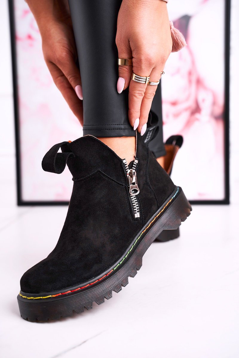 Dámské Botky Pérka S Barevným Prošíváním Semišové Černé Addison