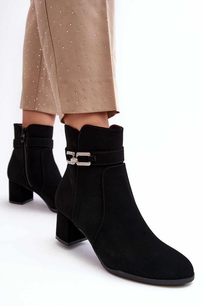Dámské boty s kotníkovou stélkou vyrobené z ekologické kůže. Osazené na nízkém patku. Špičky zaoblené. Zip po straně. Na kotníkové stélce pás s ozdobou. Klasický model, ideální pro mnoho podzimních stylizací! Při výběru velikosti se řiďte tabulkou velikostí.