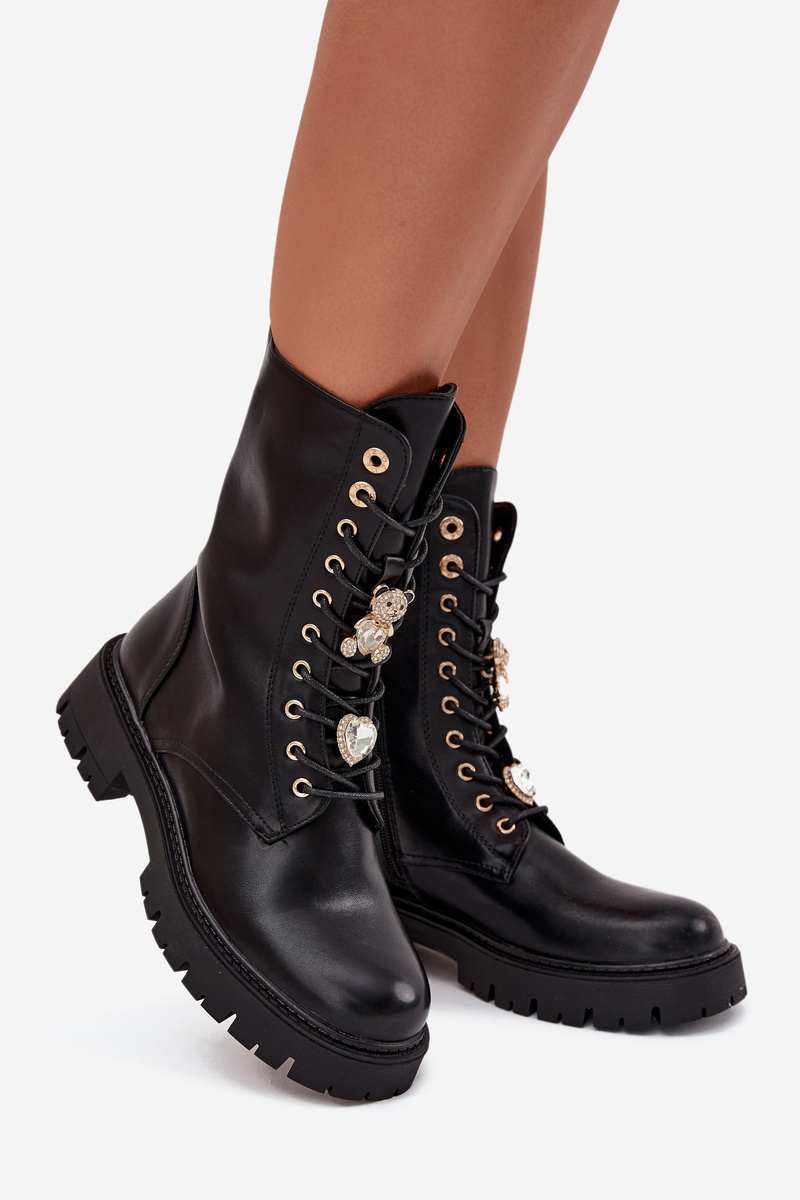 Dámské Botky Worker S Připínkami Zateplené Černé Lomina