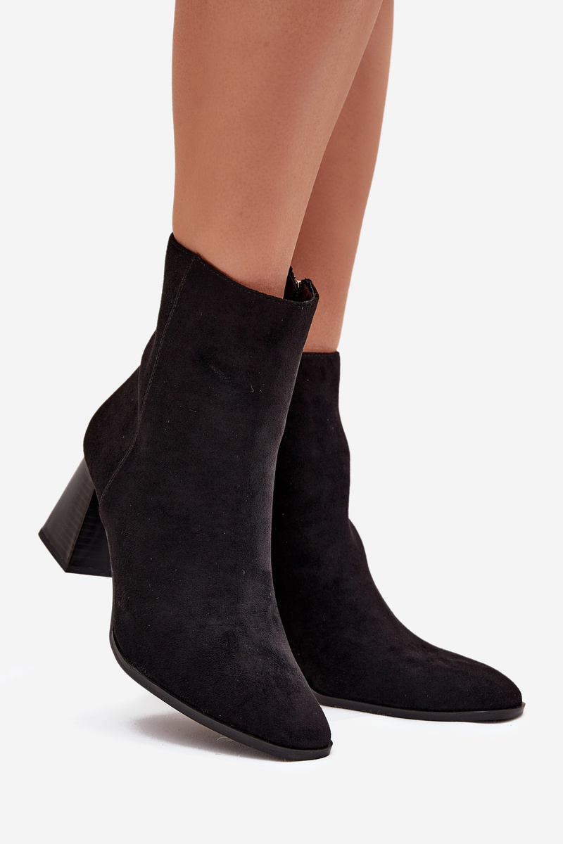 Dámské Botky Z Eko Semiše Na Podpatku Se Zipem Černé Zelita