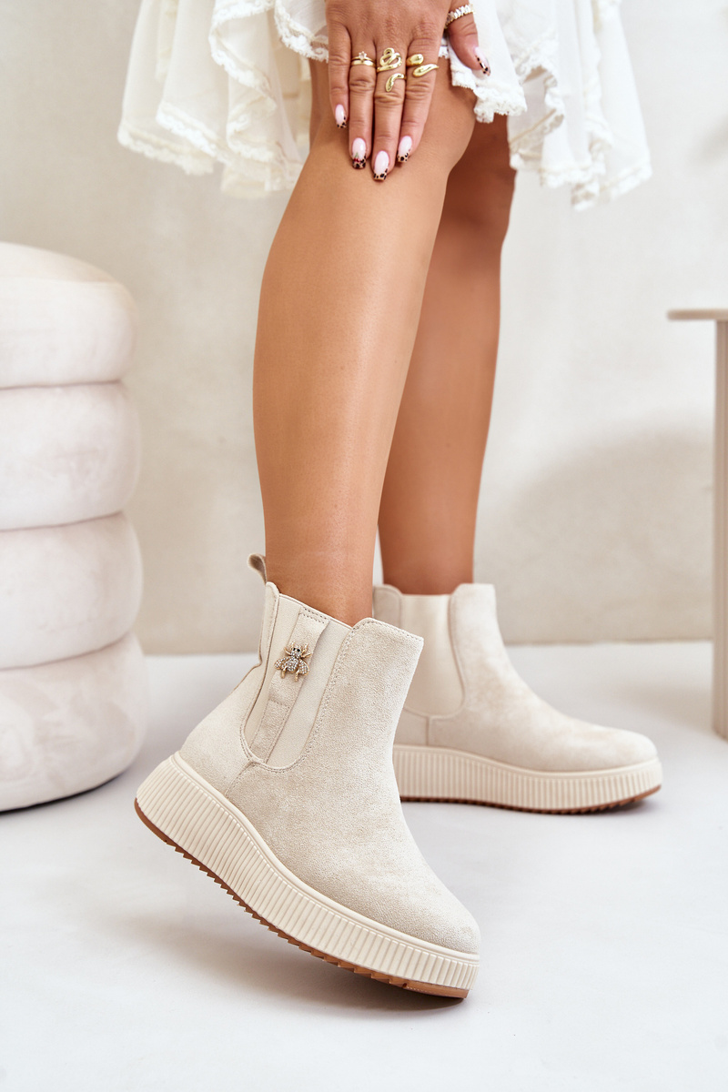 Dámské boty na platformě se sponou z eko semiše světle béžové Ciatheia