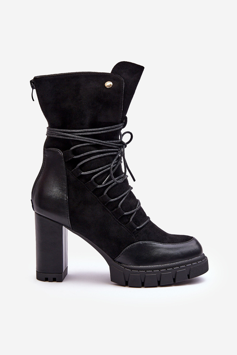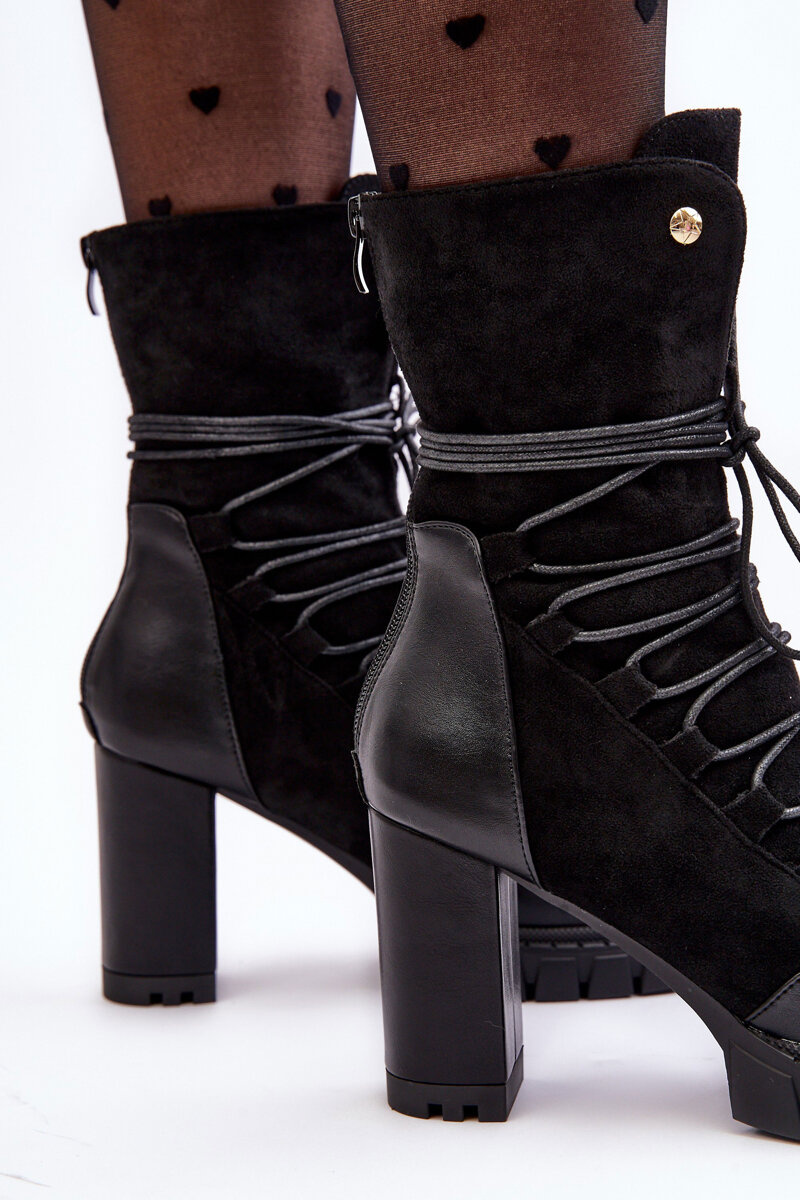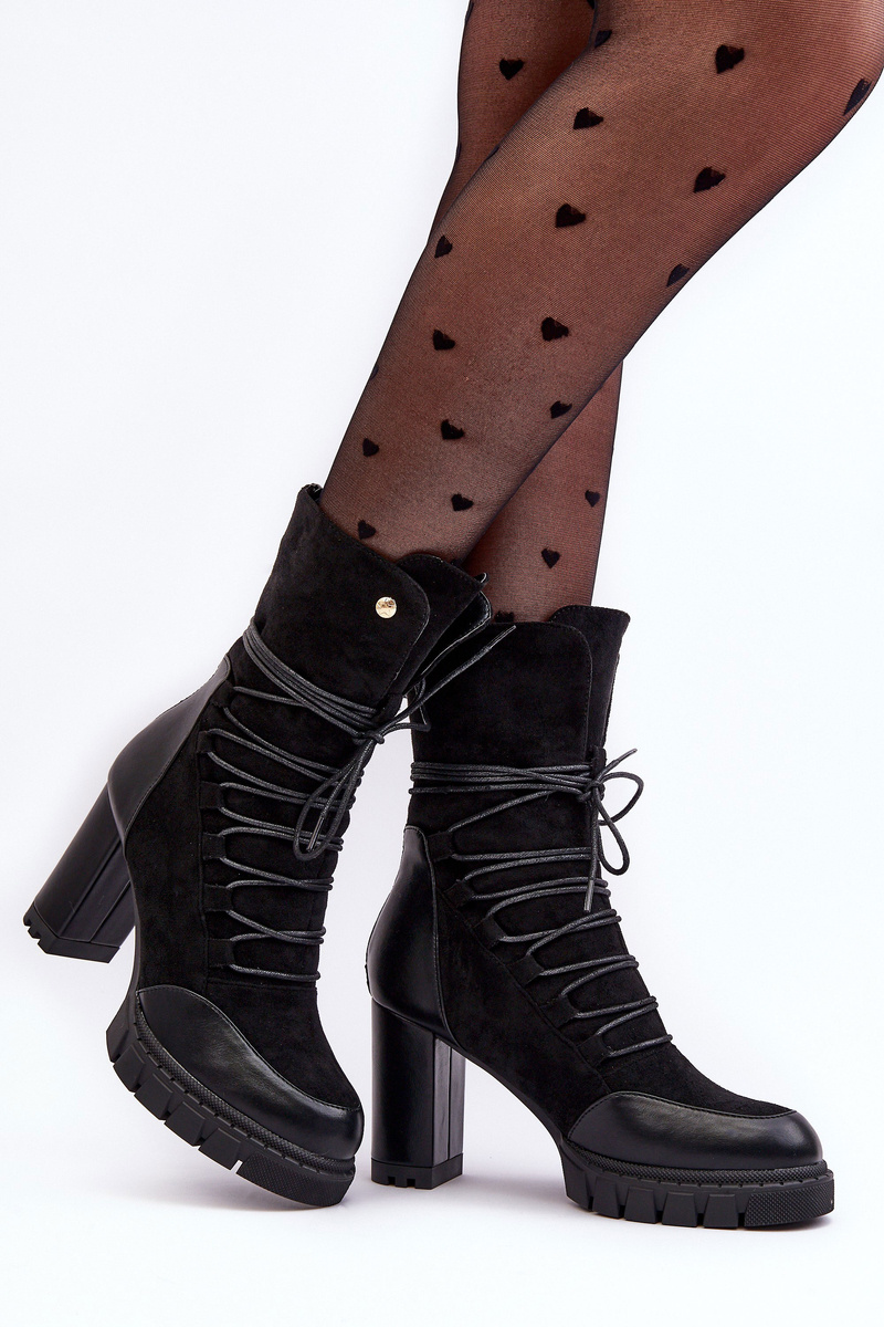 Dámské boty na platformě a masivním podpatku ve tvaru sloupu. Vyrobeno z kombinace eko kůže a eko semiše. Na zadní straně boty zip. Vyplněno kožešinou uvnitř. Špička je zaoblená. Patka je zpevněná. Musíš je mít! Při výběru velikosti se řiďte tabulkou velikostí.