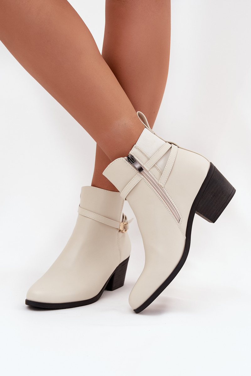 Dámské Boty Na Zip S Pásem A Zlatým Detailem Světle Béžové Zelinae