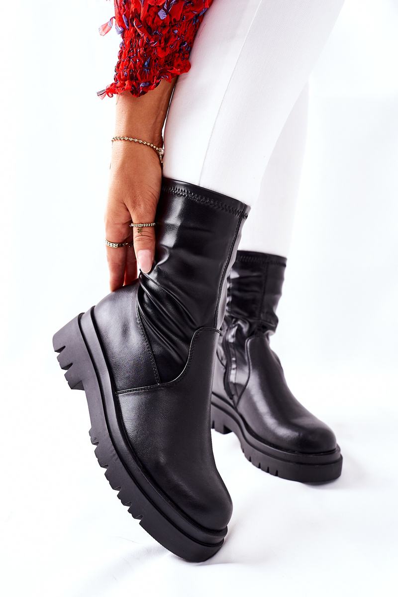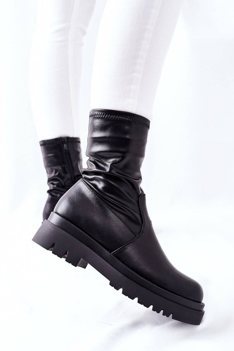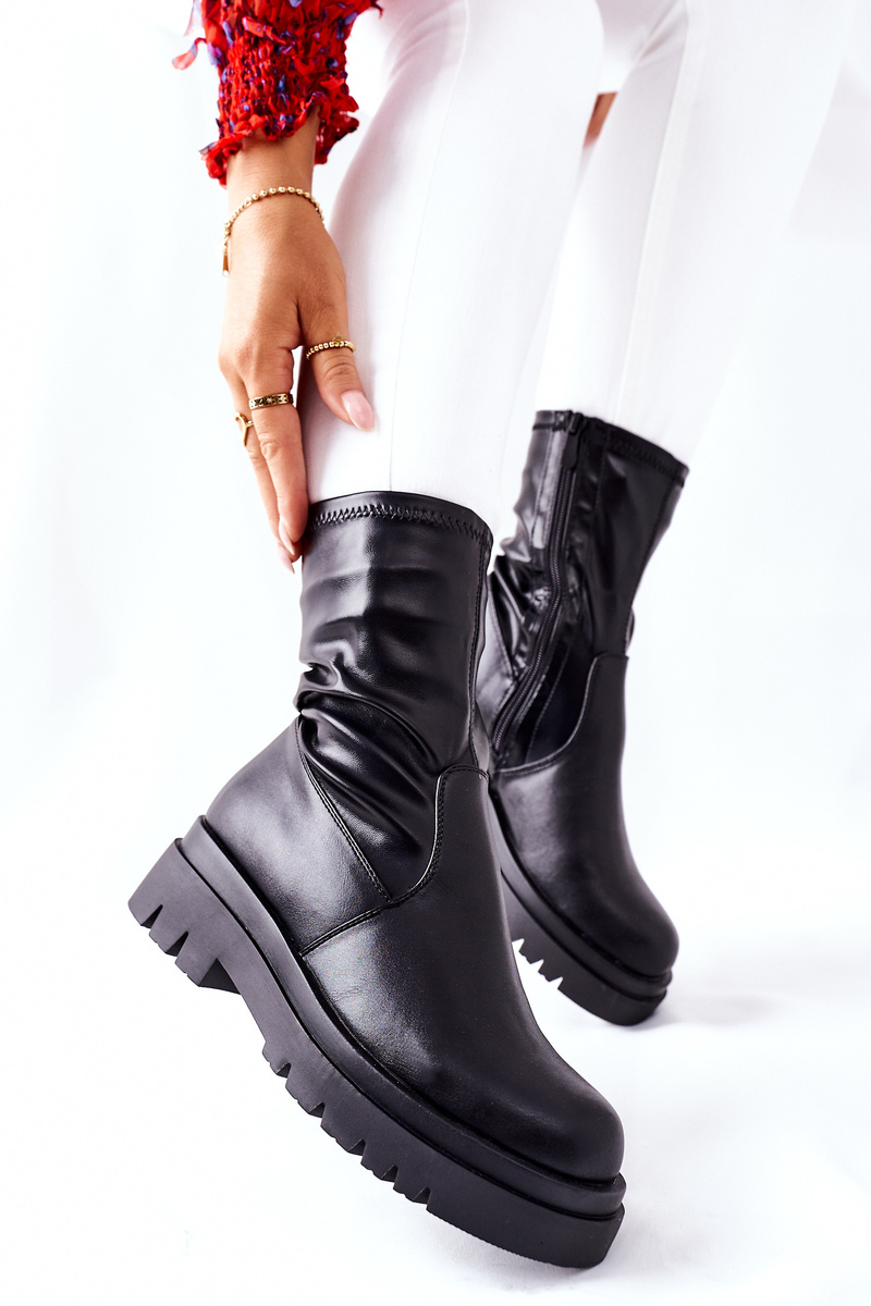 Výjimečné boty z pružné ekokůže. Masivní platforma a přiléhavý svršek zeštíhlí vaše nohy! Snadné obouvání díky zipu na boku svršku.Při výběru velikosti se prosím řiďte tabulkou velikostí.