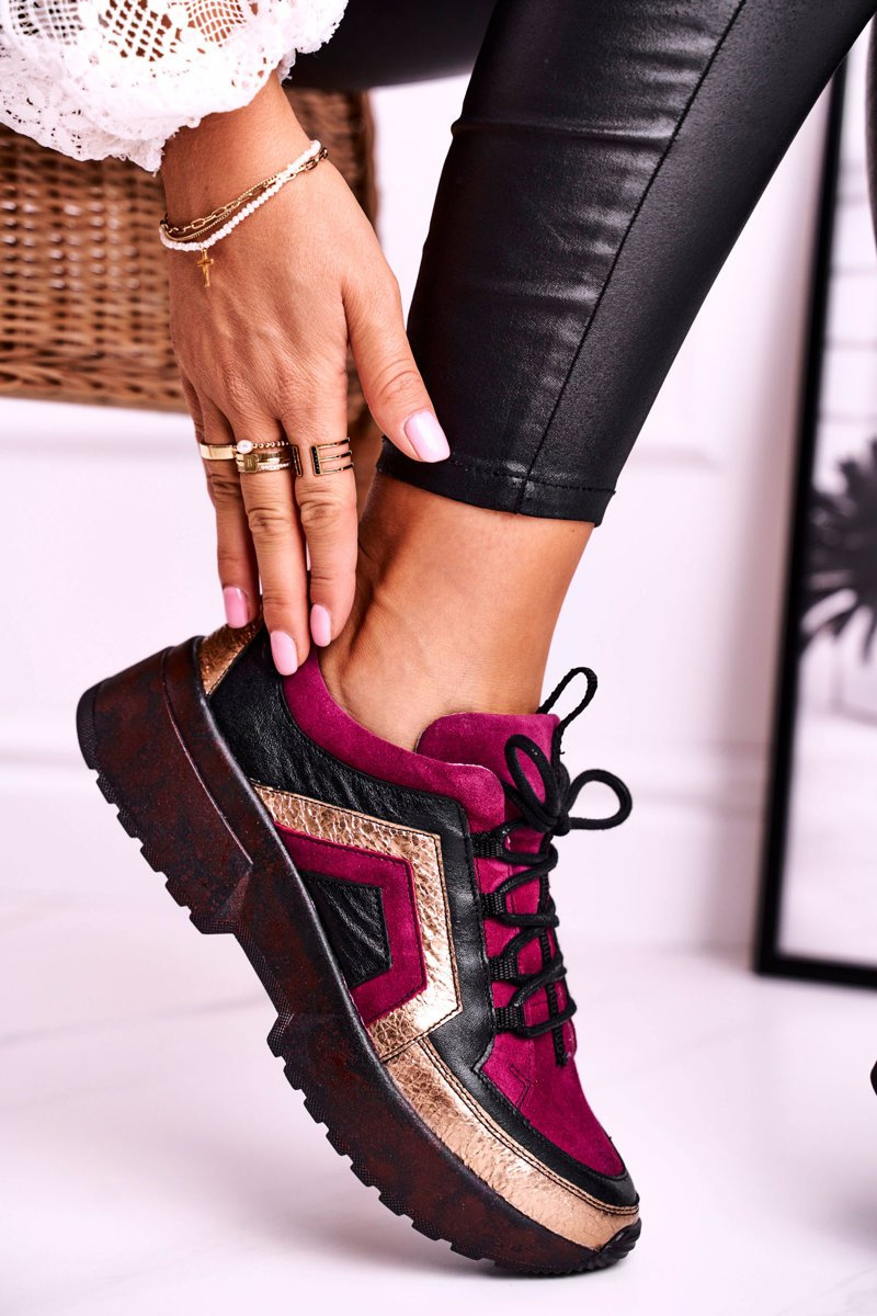 Dámské Boty Sneakersy Kůže Maciejka Burgundy 04731-23